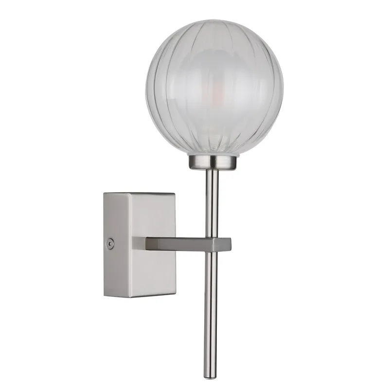 Zidna lampa sa bakljom okrenutom na gore i nikl mat metalnim kućištem je elegantno rešenje za osvetljenje vašeg kupatila. Providna staklena kugla sa satiniranim unutrašnjim staklom pruža prijatnu distribuciju svetlosti. Sa širinom od 100 mm i visinom od 141 mm, zidna lampa se savršeno uklapa u svaku prostoriju. Opremljena G9 LED sijalicom i snagom od 5W, ova lampa obezbeđuje dovoljno svetlosti za vaše kupatio. Stepen zaštite je IP44, što je štiti od prskanja vode.