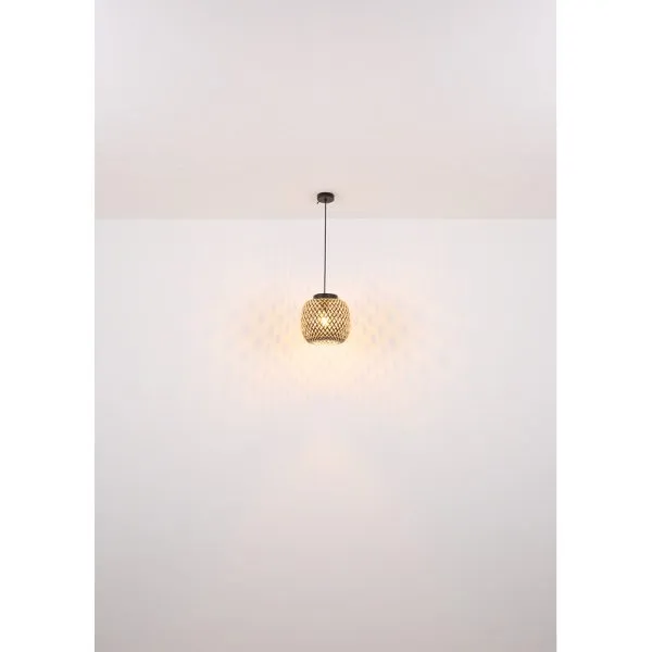 Ova prelepa visilica COLLY serije inspiriše sjajnim dizajnom. Od okruglog plafonskog nosača prodire kabl dužine 1,2 m do grla E27, koje je prekriveno oblikovanim abažurom (Ø20 cm) napravljenim od bambusa u sjajnim prirodnim bojama. Grlo E27 vam omogućava da sami odredite boju svetla i jačinu do maksimalne snage od 15 vati. Zbog trajnosti i uštede energije preporučujemo LED sijalice.