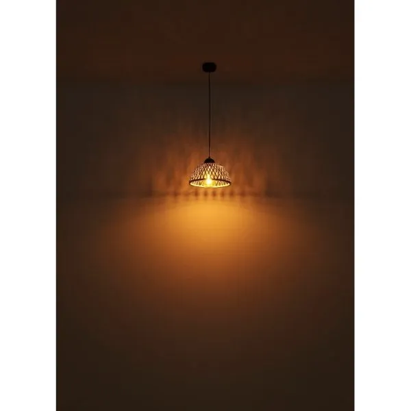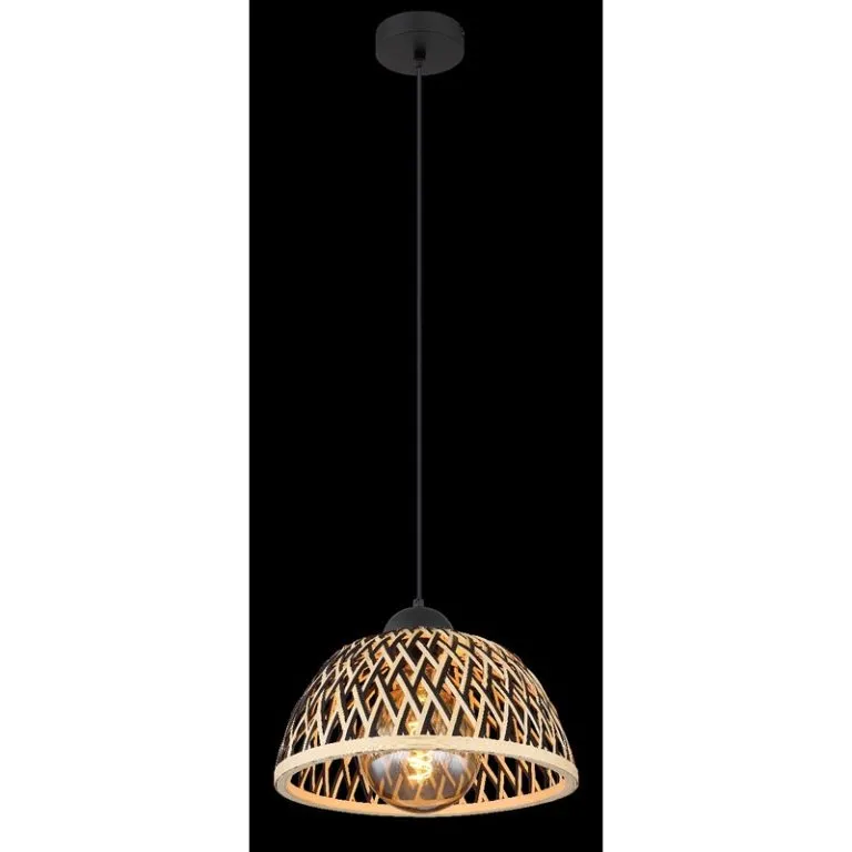 Ova prelepa visilica inspiriše sjajnim dizajnom. Od okruglog plafonskog nosača nastavlja se kabl dugačak 1,2 metara do grla E27 koja je prekriveno oblikovanim abažurom (Ø30 cm) napravljenim od bambusa u sjajnim prirodnim bojama. Grlo E27 vam omogućava da sami odredite intenzitet svetlosti i jačinu do maksimalne snage od 40 vati. Zbog trajnosti i uštede energije preporučujemo LED sijalice.