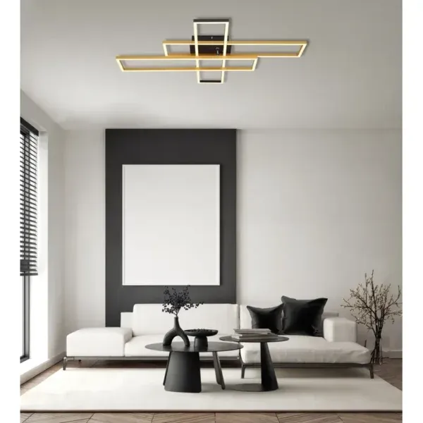 Moderna plafonska lampa izrađena od crnog mat metala, aluminijuma u crnoj i zlatnoj boji, kao i opal plastike, pravi je vizuelni akcenat u svakoj prostoriji. Sa dimenzijama od 800x600x95 mm i pravougaonim proporcijama 13×60 cm, savršeno se uklapa u savremene koncepte enterijera. Opremljena snažnim LED sijalicama, ova rasveta pruža ukupno 4230 lm izvora svetlosti i izlaz od 1650 lm, uz toplu belu boju svetla od 3000K. Energetski efikasna LED rasveta sa snagom od 40W i naponom od 230V obezbeđuje prijatnu osvetljenost i udobnu atmosferu. Bilo da je postavite u dnevni boravak, trpezariju ili hodnik, ova plafonska lampa donosi stilske akcente i impresionira svojim ekskluzivnim dizajnom. Poručite ovu visokokvalitetnu plafonsku lampu sada i uživajte u modernom konceptu osvetljenja za vaš dom.