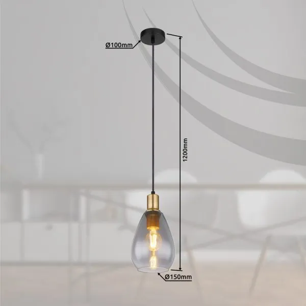 Ova prelepa visilica FANNI serije kombinuje jednostavno sa modernim dizajnom. Od crne mat baze visi crni kabl dužine 1,2 metara do grla E27, opremljen prelepim ovalnim abažurom (Ø15cm) u boji dima sa mesinganim ukrasima. Grlo E27 vam pruža mogućnost da se odlučite za laganu boju i jačinu do maksimalnog izlaza od 40 vati. Drugi modeli ove serije vam omogućavaju da savršeno upotpunite svoj dnevni boravak.
