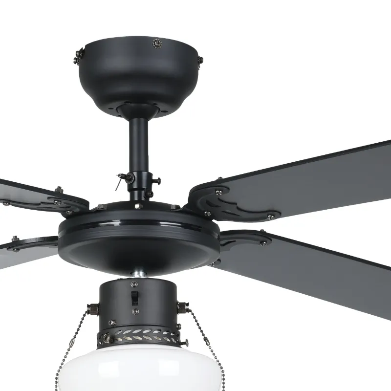 Opremljen je E27 grlom koje podržava sijalice do 60W. Možete izabrati LED sijalicu prema željenoj jačini svetla. Ventilator ima tri brzine i reverzibilan je.