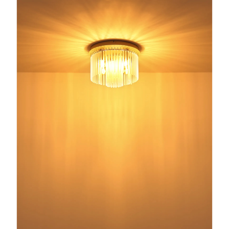 Sa prečnikom od 320 mm, plafonska lampa GORLEY idealan je izbor za hodnike, dnevne sobe, kuhinje ili spavaće sobe gde je potrebna spoj funkcionalnog i elegantnog osvetljenja. Namenjena je za E14 sijalice (bez uključenog svetlosnog fluksa), što omogućava fleksibilno podešavanje jačine svetlosti.