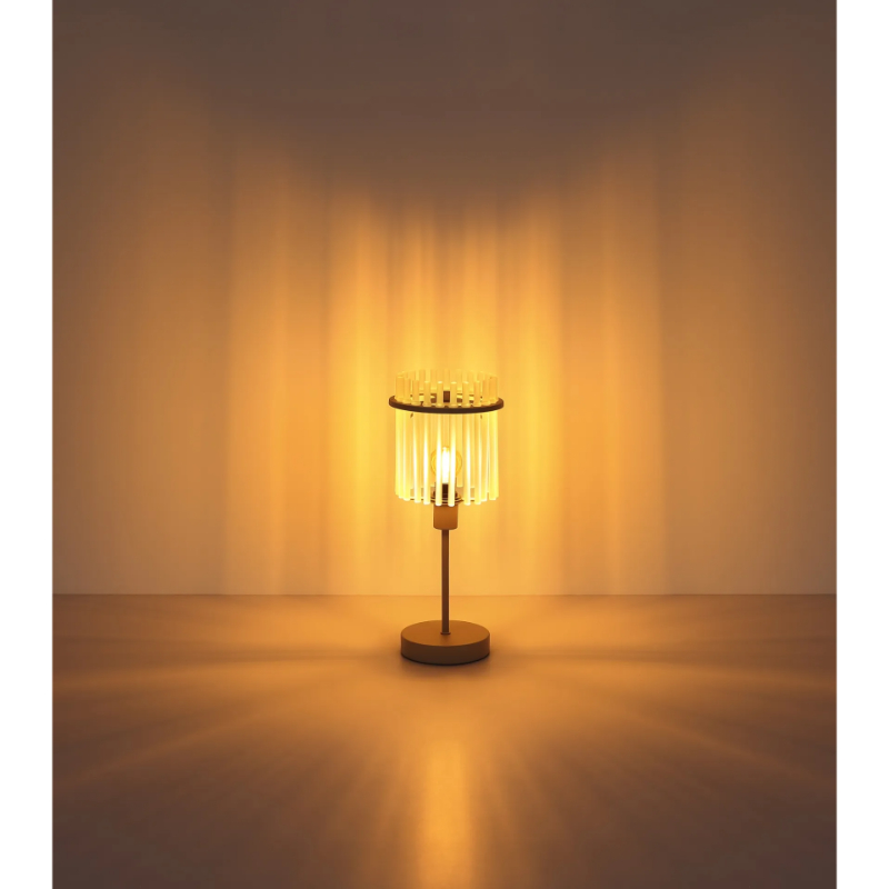 GORLEY stona lampa pesak 15698TB oduševljava svojim okruglim, elegantnim dizajnom i visokokvalitetnim materijalima. Okrugla senka napravljena od mlečnih staklenih letvica pruža meku, nezaslepljujuću distribuciju svetla, stvarajući toplu i prijatnu atmosferu u svakom prostoru. Telo lampe izrađeno je od mat bež metala, što joj daje moderan, ali istovremeno bezvremenski izgled.