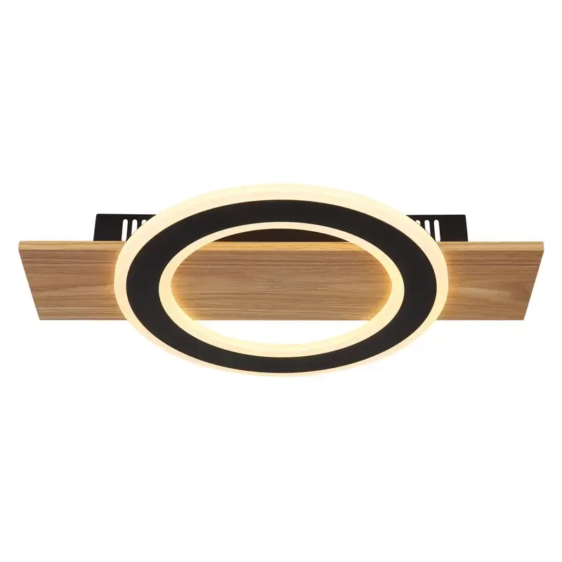JAYDEN plafonska lampa nudi elegantno rešenje za osvetljavanje vašeg prostora, sa pravougaonim dizajnom i jednim abažur u obliku prstena. Ova jednostavna, ali stilska lampa savršeno se uklapa u različite prostorije, kao što su dnevne sobe, spavaće sobe i kancelarije. Kućište je napravljeno od plastike sa površinom u efektu tamnog drveta, dok je abažur od metala sa mat crnim spoljašnjim slojem i opalnim akrilnim premazom. Lampa pruža toplo belo svetlo sa temperaturom boje od 3000K, što je idealno za stvaranje prijatne atmosfere. Zahvaljujući fleksibilnim mogućnostima instalacije i estetskom dizajnu, ova lampa je savršen izbor za prostorije u kojima je poželjan moderan i elegantan izgled.