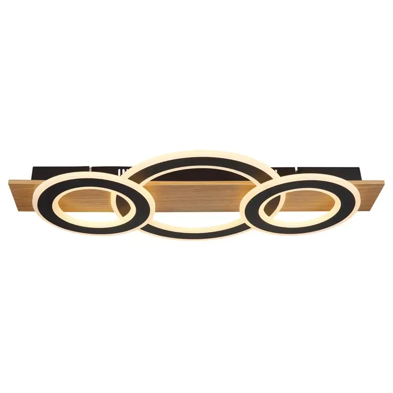 JAYDEN plafonska lampa predstavlja zadivljujuće rešenje za vaš prostor. Pravougaoni dizajn ove lampe karakterišu tri prstena koji se harmonično uklapaju sa oblikom abažura. Kućište je izrađeno od plastike sa površinom u efektu tamnog drveta, dok je abažur od metala sa mat crnim spoljašnjim slojem i opalnim akrilnim premazom. Lampa pruža toplo belo svetlo sa temperaturom boje od 3000K, što je idealno za osvetljavanje dnevnih soba, spavaćih soba i kancelarija. Zahvaljujući fleksibilnim opcijama za instalaciju i estetskom dizajnu, ova lampa je savršen izbor za prostorije u kojima je poželjan moderan i elegantan izgled. Sa svojim ekskluzivnim karakteristikama, JAYDEN plafonska lampa je savršen izbor za svaku dekoraciju.