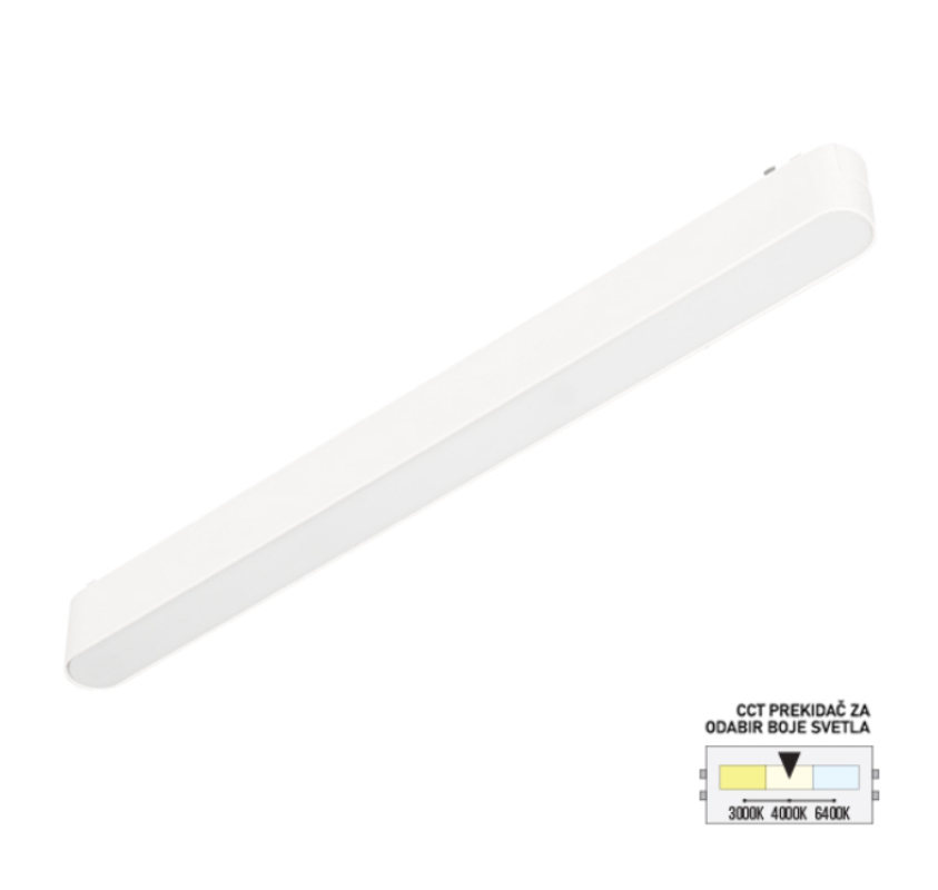 LED magnetna svetiljka cct ultra slim predstavlja moderno i funkcionalno rešenje za osvetljenje, namenjeno montaži na magnetnu ultra slim šinu. Zahvaljujući izduženom i tankom kućištu dimenzija 352×30x25mm, izrađenom od aluminijuma i plastike u elegantnoj beloj boji.