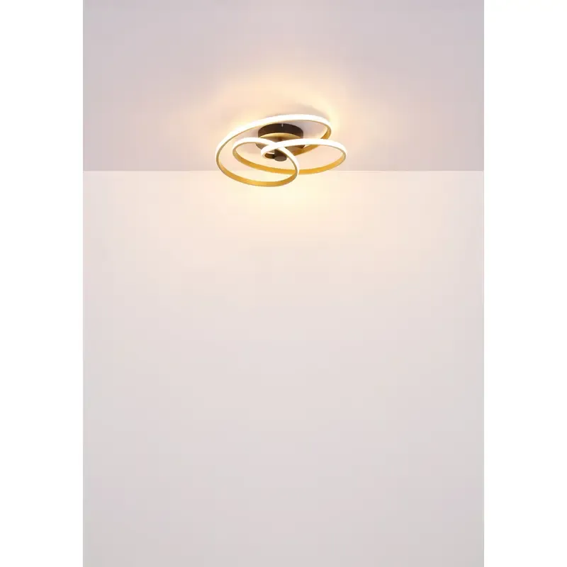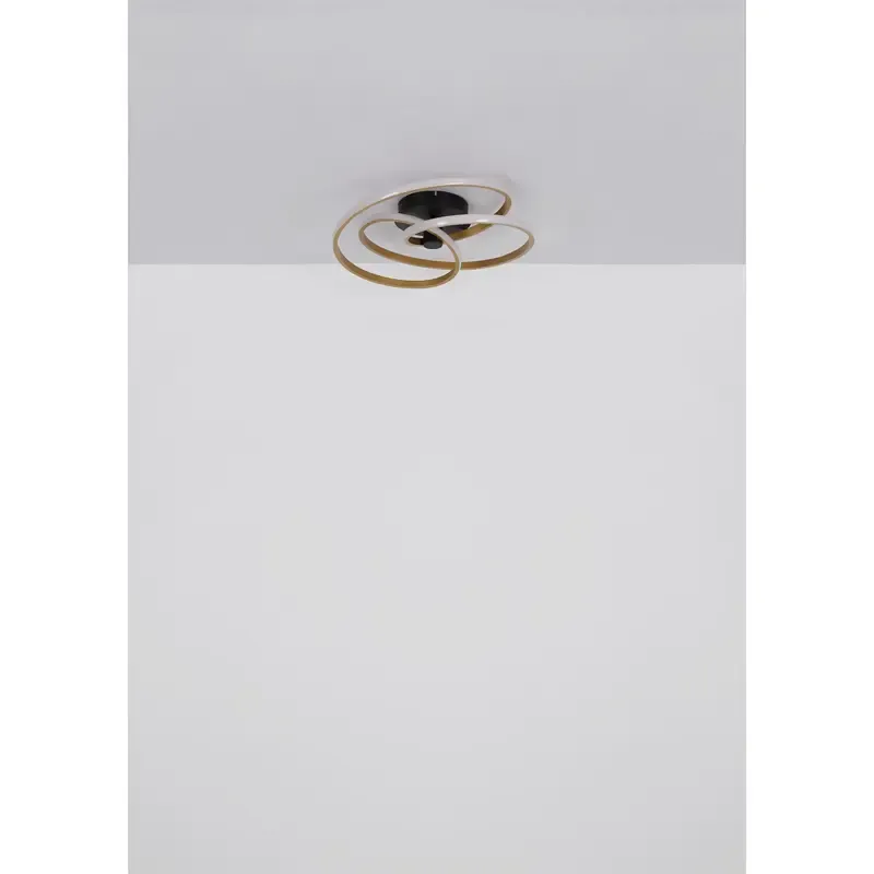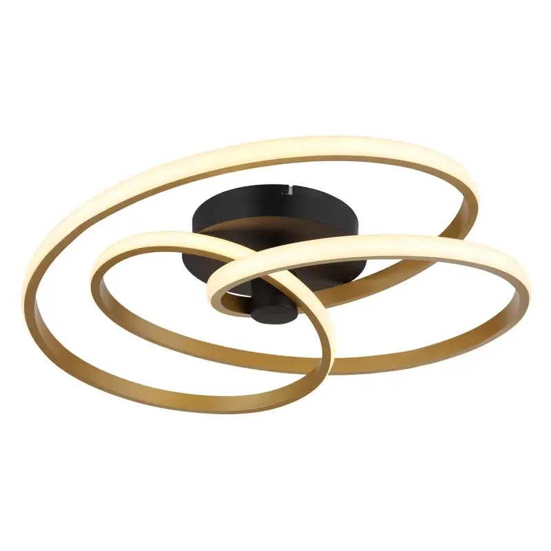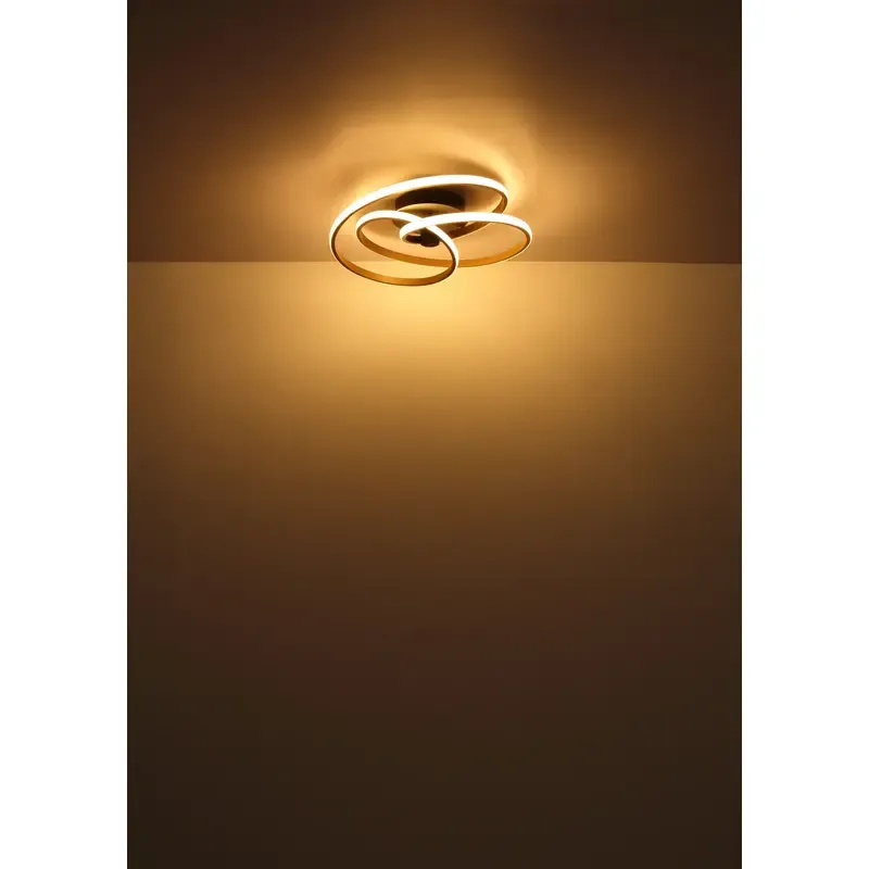 Moderna plafonska lampa sa okruglim dizajnom i detaljem u obliku čvora pravi je ukras svake prostorije. Izrađena od mat crnog metala, opremljena je štedljivim LED izvorom svetlosti i emituje prijatnu toplo belu svetlost temperature 3000K. Telo od mat crnog metala daje lampi savremen izgled, dok aluminijum u zlatnoj boji i opalna plastika na difuzoru unose dozu sofisticiranosti. Sa prečnikom od 500 mm, ova plafonska lampa ne samo da pruža dovoljno svetla, već i unosi stilsku atmosferu u enterijer. Unesite moderan dizajn i toplinu u svoj dom uz ovu plafonsku lampu u kombinaciji crnog mat metala i zlatno obojenog aluminijuma i plastike.