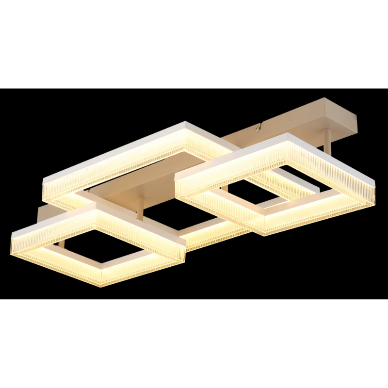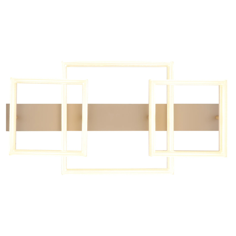 Led plafonska lampa ZARA 48047D2. Glavni detalj za moderne životne prostore. pravougaona plafonjera ZARA oduševljava sa tri pomerena kvadrata postavljena jedan iznad drugog, dajući prostoriji dinamičan i moderan dodir. Sa dužinom od 630 mm i širinom od 330 mm, idealna je za ravnomerno osvetljavanje većih ili srednjih prostorija kao što su dnevne sobe, hodnici ili trpezarije. Metalno kućište u mat boji peska i beloj boji pruža topao, savremen izgled.