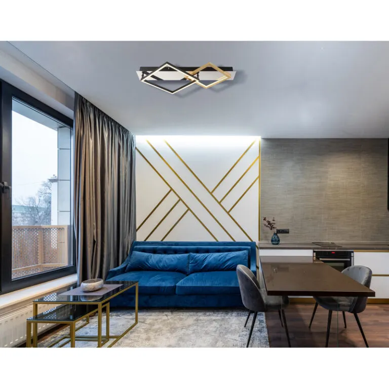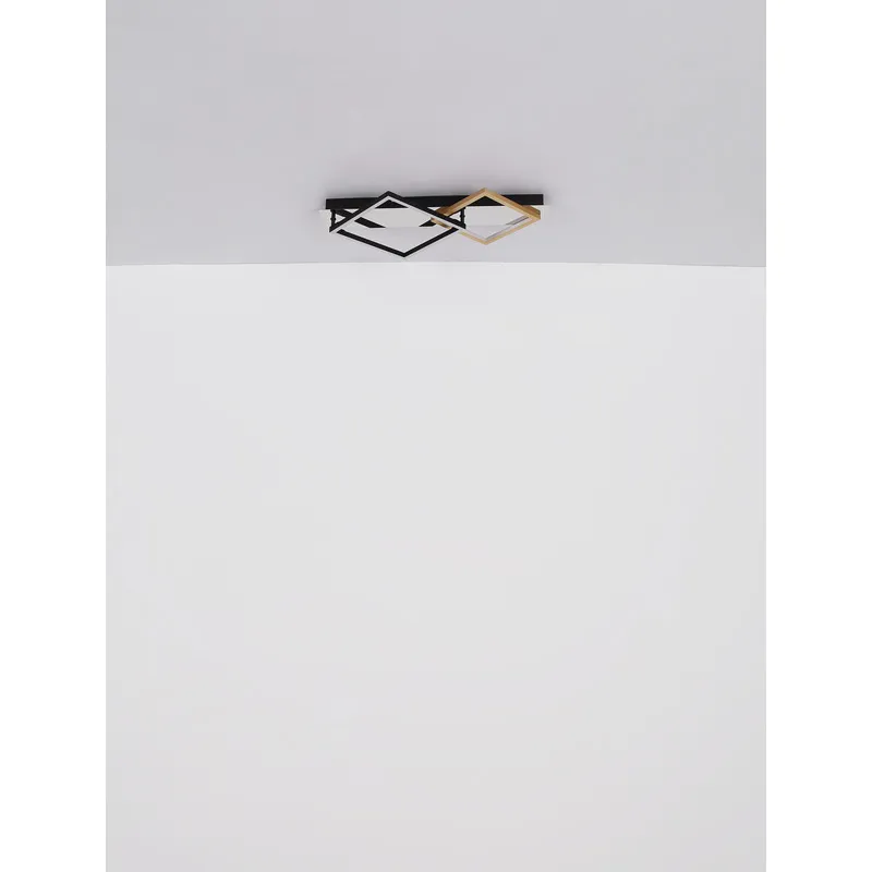 Plafonska lampa serije LESINA napravljena je od hromiranog metala, crnog mat lakiranog metala, brušenog aluminijuma zlatne boje i opal plastike. Dimenzije: 590x355x70 mm. Lampa je opremljena LED modulom snage 24W i naponom 230V. Ima svetlosnu snagu od 2700 lumena i svetlosnu efikasnost od 1100 lumena sa temperaturom boje svetla od 3000K. Ova plafonska lampa privlačiće poglede u svakoj prostoriji. Sa modernim dizajnom i kvalitetnom izradom pravi je dragulj. Uverite se i sami!