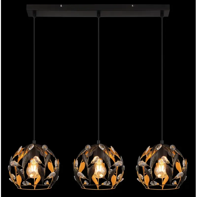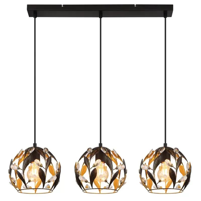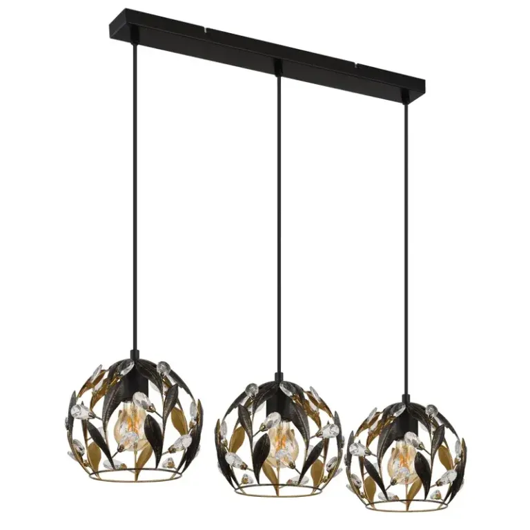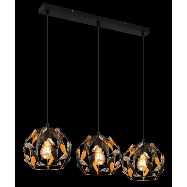 Mika visilica kombinuje bezvremenski dizajn sa elegantnom funkcionalnošću. Sa svojom ravnom šinom i tri visilice, ovo produženo svetlo se harmonijski uklapa u svaku prostoriju. Telo od mat crnog lakiranog metala osigurava moderan, ali i tradicionalan izgled. Umetnički abažuri u zlatnoj boji, patiniranom metalu i elegantnoj crnoj boji ukrašeni su filigranskim listovima i svetlucavim kristalima koji stvaraju očaravajuću igru svetlosti. Prozirni akrilni kristali reflektuju svetlost na jedinstven način i donose dašak glamura u vaše prostorije. Sa tri E27 grla (sijalice nisu uključene), imate slobodu da odaberete odgovarajuće sijalice i kreirate svoj lični ambijent osvetljenja. Idealna za trpezariju, dnevnu sobu ili kao stilski dizajnerski element – Mika visilica je savršen izbor za sve koji cene ekskluzivnost i eleganciju.