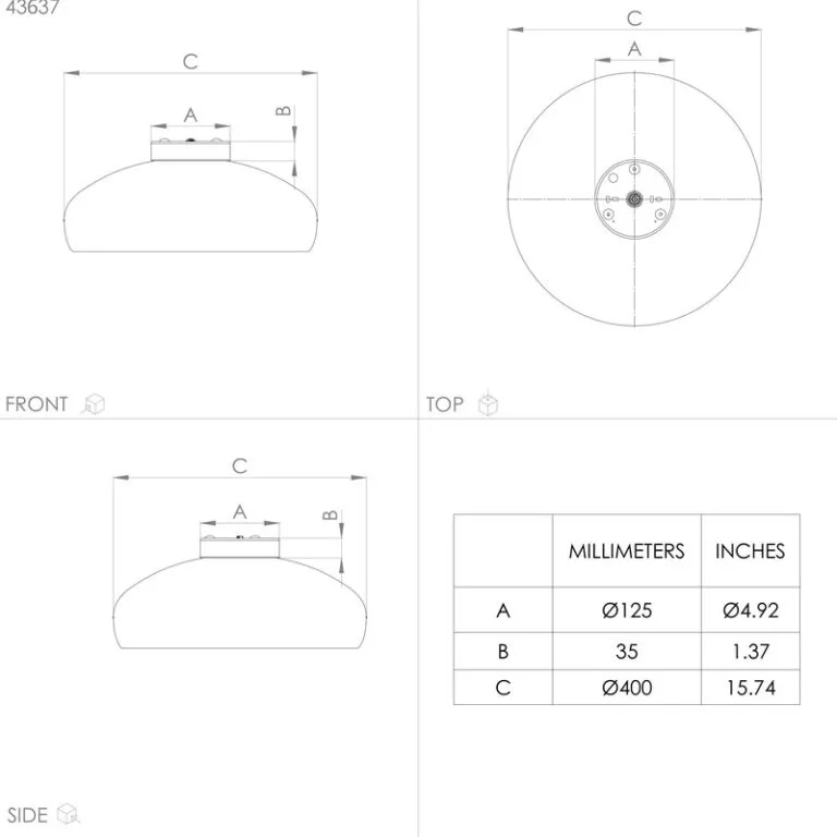 | Prečnik artikla (mm/in) | 400 / 15,75 |