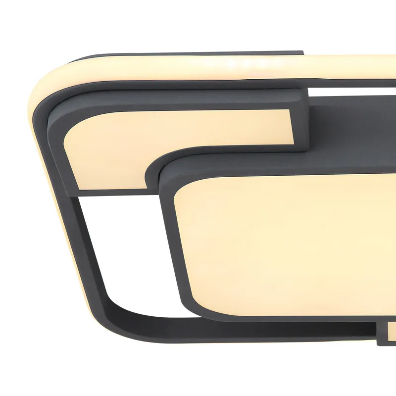 Ova kvadratna plafonska lampa iz srije NIRRA (42x42x cm) je odlična za vaš enterijer. Sastoji se od kvadratnog metalnog okvira boje grafita okruženog oplanim akrilom. Unutar rama se nalaze još tri rama, čija je površina takođe prekrivena akrilom. LED sijalice ispod daju 1100lm jakog svetla sa prijatnom bojom svetla od 3000K (toplo bela). Sa više proizvoda iste serije možete upotpuniti sliku u vašem domu.
