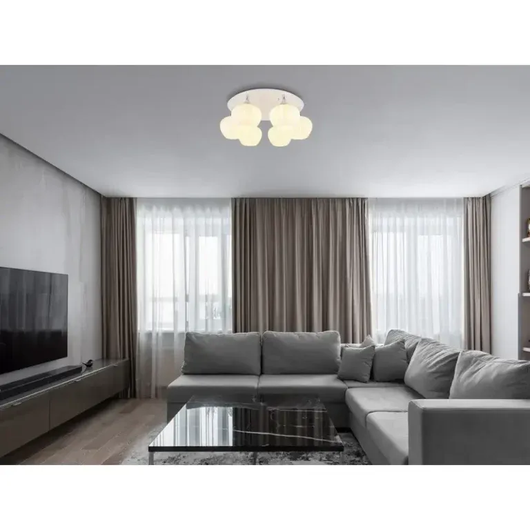Doživite plafonsku lampu MAXY, jedinstvenu plafonsku lampu koja se izdvaja svojim okruglim oblikom i šest kuglastih stakala sa žljebovima. Stakla su napravljena od opalnog i matiranog stakla, sa dekorativnim žljebovima koji joj daju prepoznatljiv izgled. Telo lampe je od belog mat metala, što stvara elegantan kontrast u odnosu na hromirani metal rukohvata. Plafonska lampa MAXY je štedna i savremena opcija za osvetljenje, idealna za moderne dnevne sobe, kancelarije i druge prostore. Sa dugim vekom trajanja i jednostavnom montažom, plafonska lampa MAXY je sigurna investicija za vašu budućnost. Poručite visilicu MAXY danas i dizajnirajte svoj dom ili kancelariju sa jedinstvenim osvetljenjem!