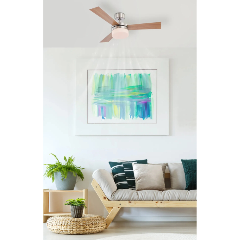 Plafonski ventilator Alana 0333 je namenjen za letnji i zimski rad jer ima mogućnost rotacije u oba smera. Reverzibilna krila se mogu koristiti u boji bukve ili srebra. Integrisani izvor svetlosti takođe pruža prijatno osvetljenje. Trostepena regulacija kojom se upravlja putem daljinskog upravljača osigurava lako rukovanje. Njegov prečnik je 105 cm i može se postaviti na kose krovove ako nagib ne prelazi 35°. Maksimalna snaga motora je 50 W.