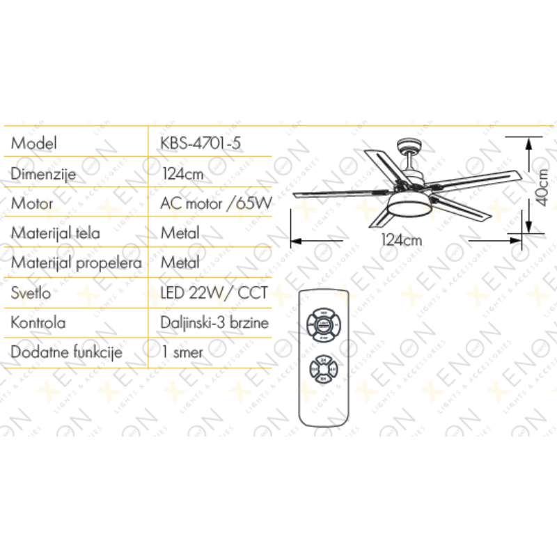 PLAFONSKI VENTILATOR KBS 4701-5 BLACK XENON