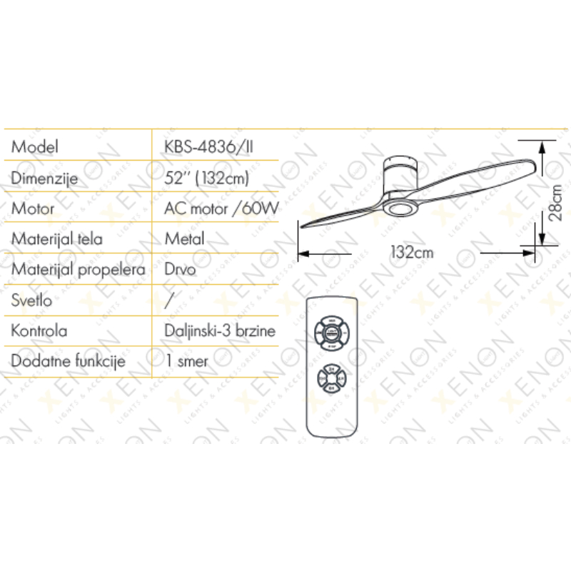 PLAFONSKI VENTILATOR KBS 4836 WH+NATURAL WOOD XENON