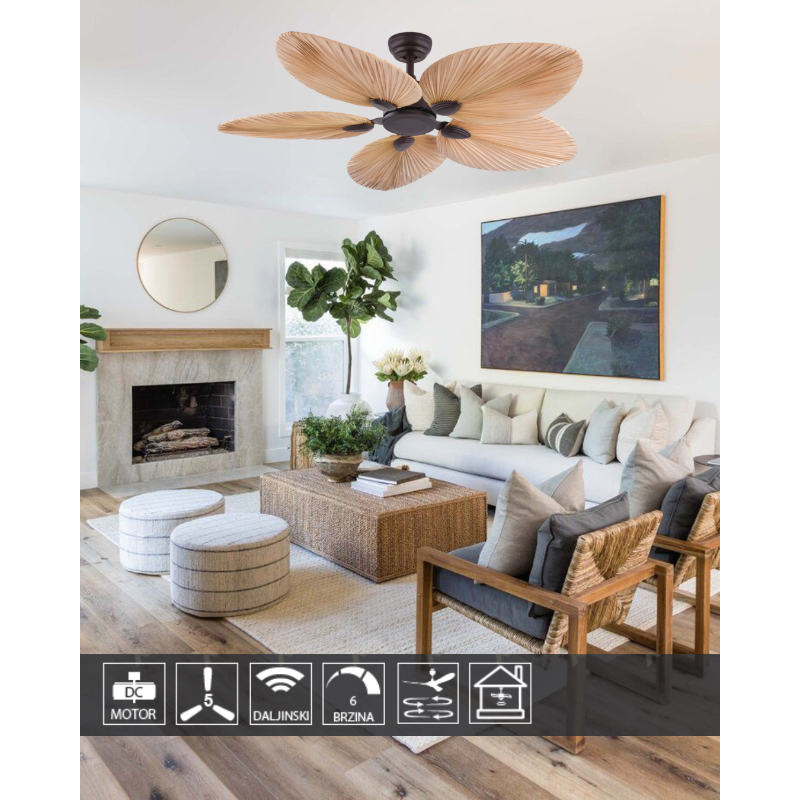 PLAFONSKI VENTILATOR KBS 4836 BK+LIGHT WOOD XENON