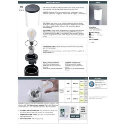 AMELIA 400 CCT STUBNA CRNA LAMPA IP55 1xE27 LED FUMAGALLI
