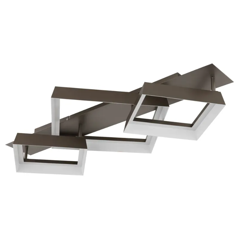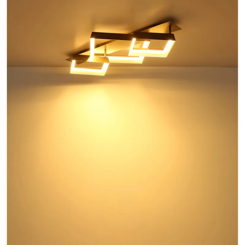 SYRAKUS led plafonjera kafa 48049D2 kombinuje moderan dizajn sa funkcionalnim osvetljenjem, unoseći elegantne i savremene aksente u svaki prostor. Pravougaona osnova ukrašena je sa tri kvadrata, koji lampi daju dubinu, strukturu i vizuelni karakter.