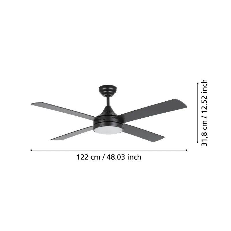 Plafonski ventilator crni mat TRINIDAD sa svetlom predstavlja moderan i funkcionalan dodatak za vaš dom. Ovaj plafonski ventilator donosi osveženje leti i efikasnu cirkulaciju toplog vazduha zimi zahvaljujući reverzibilnoj funkciji. Sa prečnikom od 1220 mm i visinom od 320 mm, idealan je za dnevne i spavaće sobe, trpezarije i kancelarije, pružajući udoban ambijent uz tihi rad.