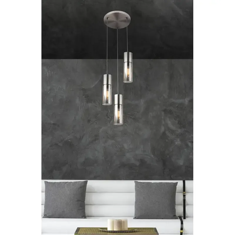Visilica Annika predstavlja atraktivan dodatak savremenim enterijerima. Tekstilni kabl dužine 150 cm u crno-beloj boji povezan je sa malim, okruglim plafonskim nosačem u mat nikl finišu. Na donjem kraju vise uske, elegantne cilindrične senke od stakla. Zatamnjeno staklo stvara prijatno toplo svetlo, koje doprinosi udobnijoj atmosferi u prostoru. Ova visilica se savršeno uklapa u moderne stilove uređenja i lako se kombinuje sa drugim proizvodima iz iste serije. Zahvaljujući E27 grlu, možete sami izabrati sijalicu do maksimalno 25 W u zavisnosti od željene boje i jačine svetla. Preporučujemo LED sijalice zbog energetske efikasnosti i dugotrajnosti. Kombinujte ovu prelepu visilicu sa ostalim proizvodima iz serije Annika i prepustite se čarima njenog elegantnog dizajna.