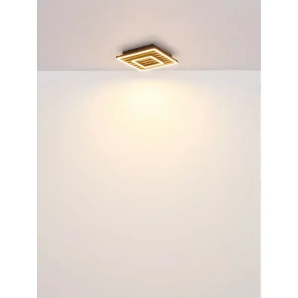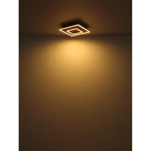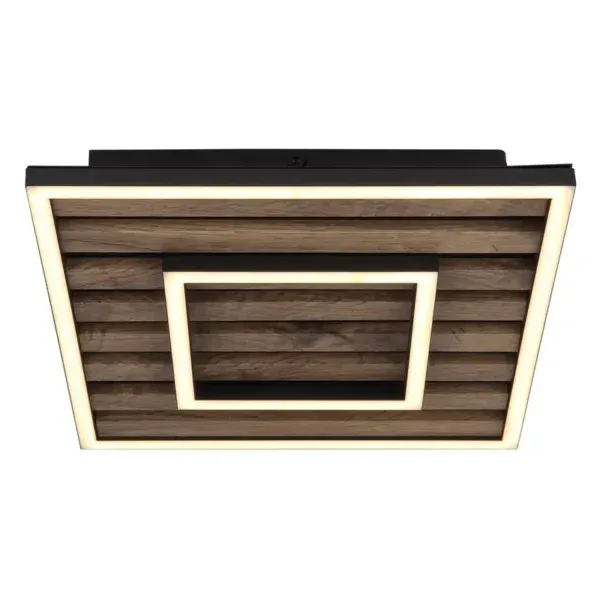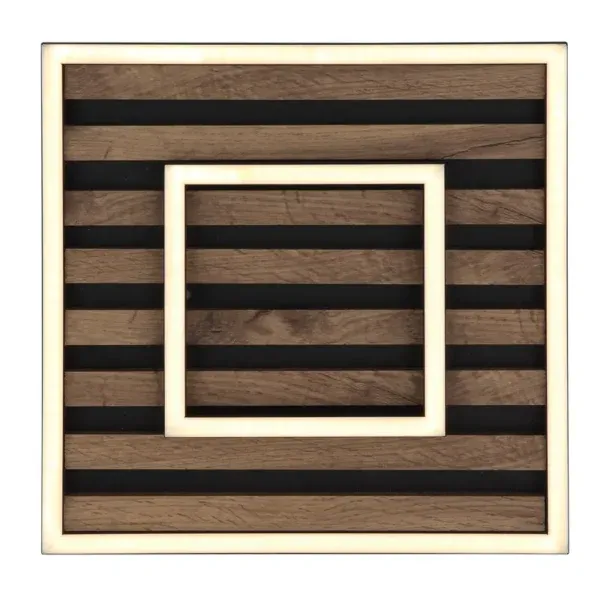 WOODY plafonska lampa u modernom izgledu akustičnog panela kombinuje stilizovane materijale i inovativne funkcije. Telo lampe je izrađeno od mat crnog metala, dok MDF ploča u tamnom drvenom izgledu dodaje topao, prirodan akcenat. Abažur napravljen od mat aluminijuma i opal plastike obezbeđuje ravnomernu distribuciju svetlosti. Svetlost se može kontrolisati u nekoliko faza putem zidnog prekidača, nudeći tri različite opcije osvetljenja: spoljašnji okvir, unutrašnji okvir ili oba zajedno. Integrisana funkcija memorije čuva omiljena podešavanja. Opremljena LED modulom, lampa pruža izvor svetlosti od 1850 lm sa izlazom od 1000 lm i prijatnom temperaturom boje od 3000 K u toploj beloj boji.