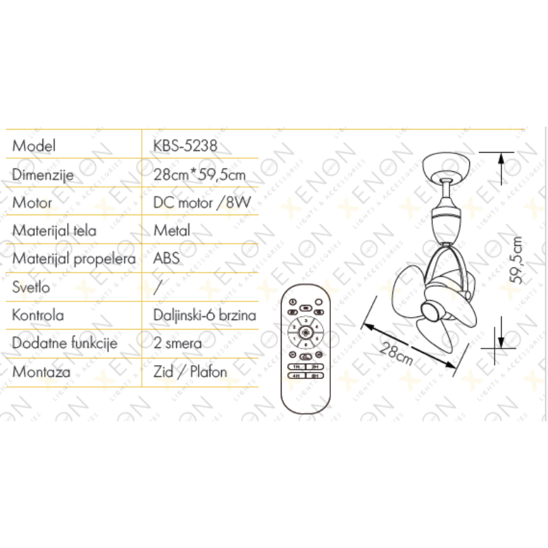 Zidni / Plafonski ventilator KBS 5238 nickel+brown predstavlja funkcionalno i moderno rešenje za ventilaciju i osvetljenje prostora. Opremljen je daljinskim upravljačem koji omogućava izbor između 6 brzina rada, kao i nezavisno upravljanje ventilatorom i svetlom, što pruža maksimalnu praktičnost u svakodnevnoj upotrebi.