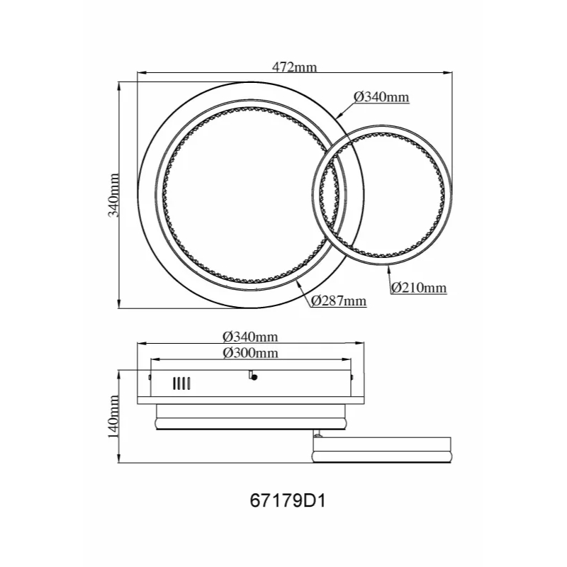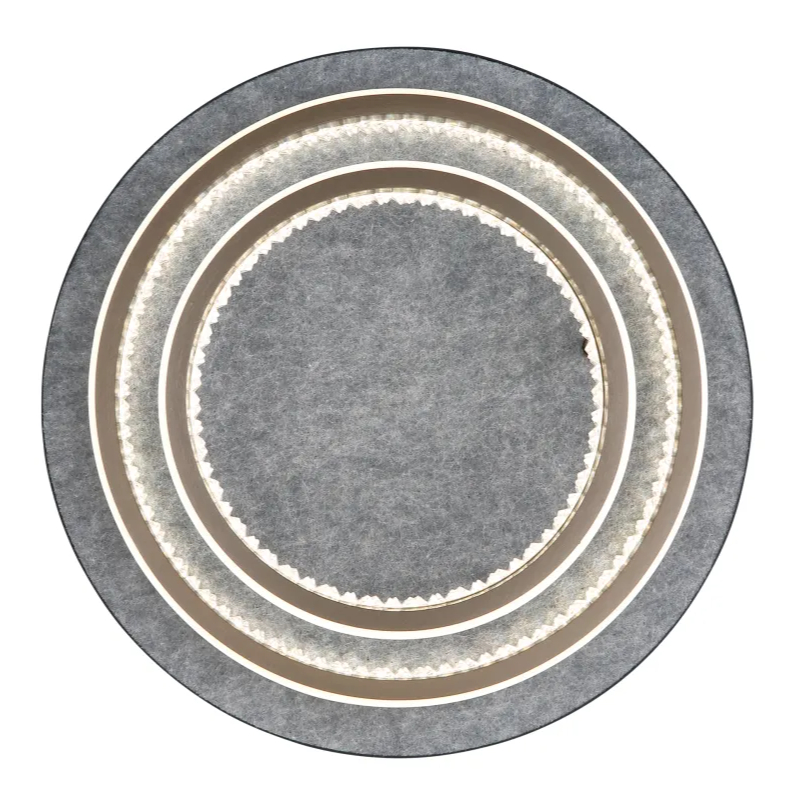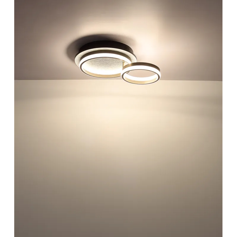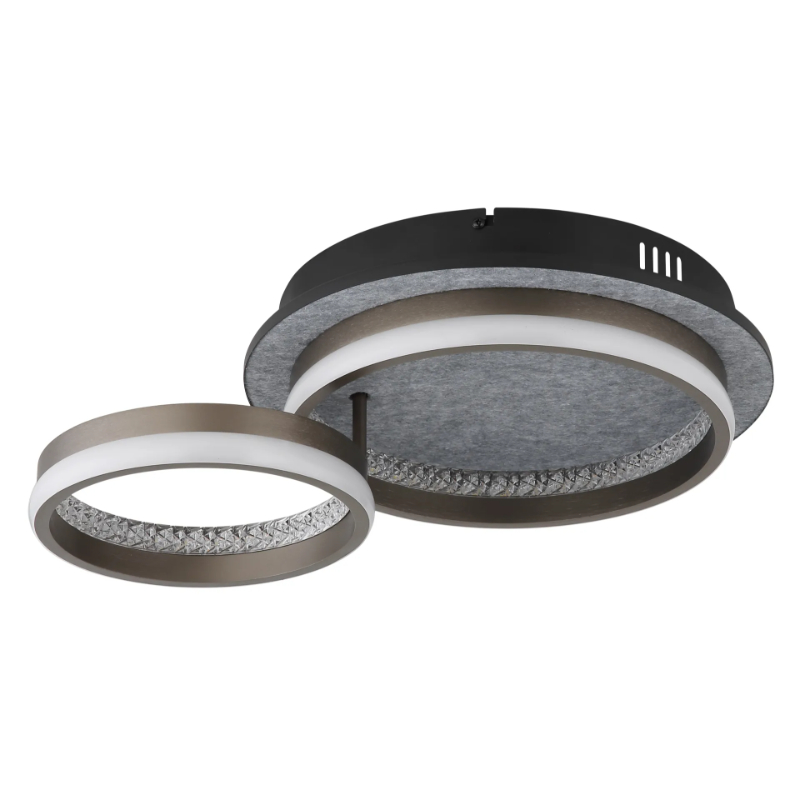 Poseban vizuelni efekat postiže se zahvaljujući ugrađenom rotirajućem prstenu, koji okruglom telu lampe daje zanimljivu dubinu i dinamičnost. Sa dimenzijama dužine 472 mm i širine 340 mm, lampa pruža ujednačeno i prijatno osvetljenje.