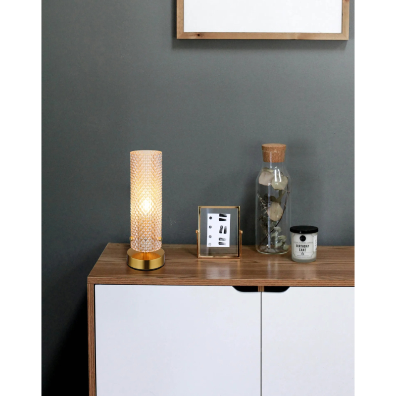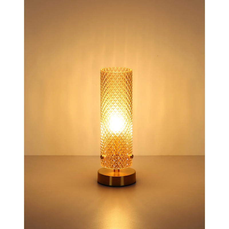 KAROLO stona lampa zlato 15775T oduševljava svojim elegantnim dizajnom i stvara toplu, prijatnu atmosferu. Cilindrično stakleno kućište sa saćastom strukturom obezbeđuje zanimljive svetlosne reflekse, dok telo od zlatno obojenog metala lampi daje luksuzan i profinjen izgled.