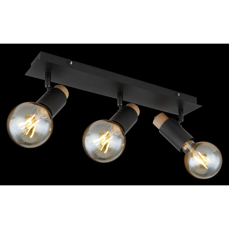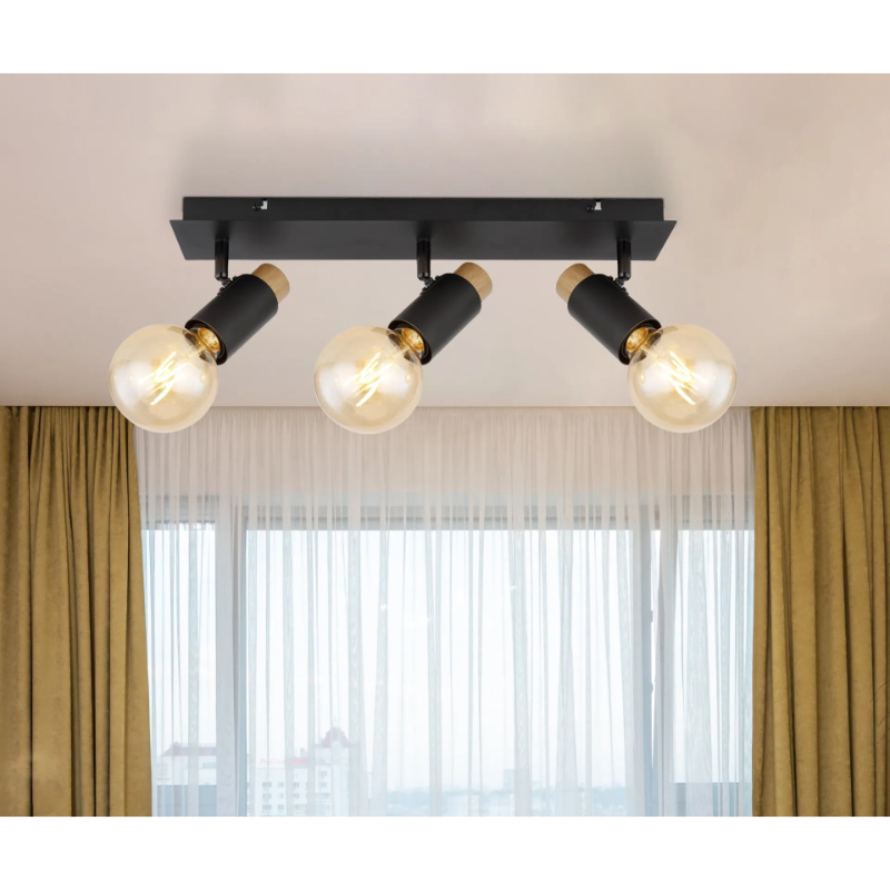 Spot lampa matti 54045-3 ova prelepa spot lampa oduševljava svojim jednostavnim dizajnom. Sa mat crnog pravougaonog plafonskog nosača (8 × 48,5 cm) izlaze tri rotirajuća zgloba na kojima se nalaze E27 grla sa dekorativnim detaljima od drveta i metala. E27 grla vam omogućavaju da sami odaberete boju i jačinu svetla (maks. 40W). Zbog dugog veka trajanja i uštede energije preporučujemo LED sijalice.